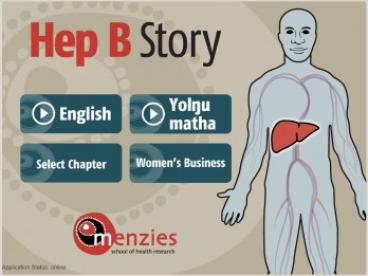 The Hep B story is a visual, interactive app in English and Yolŋu matha designed for patients living with chronic hepatitis B (hep B) and their families. It tells the story of the hep B virus, how you get it, what happens over time, how you know you have it as well as details about immunisation and treatment (including a game). There is also a separate women's section dealing with mother to child transmission and ways to prevent it.